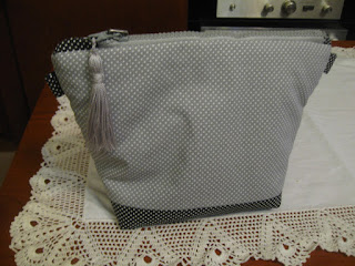 O Fecho foi cinzento e o interior foi forrado com o mesmo tecido.